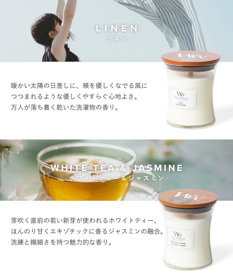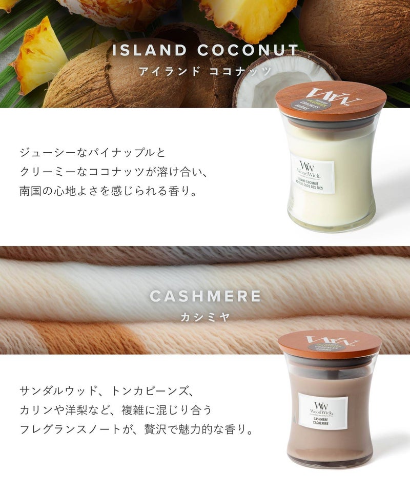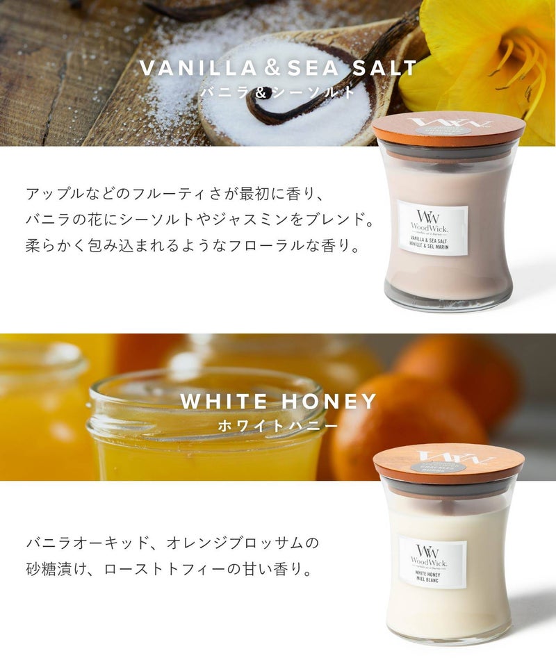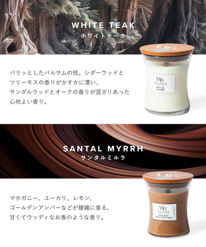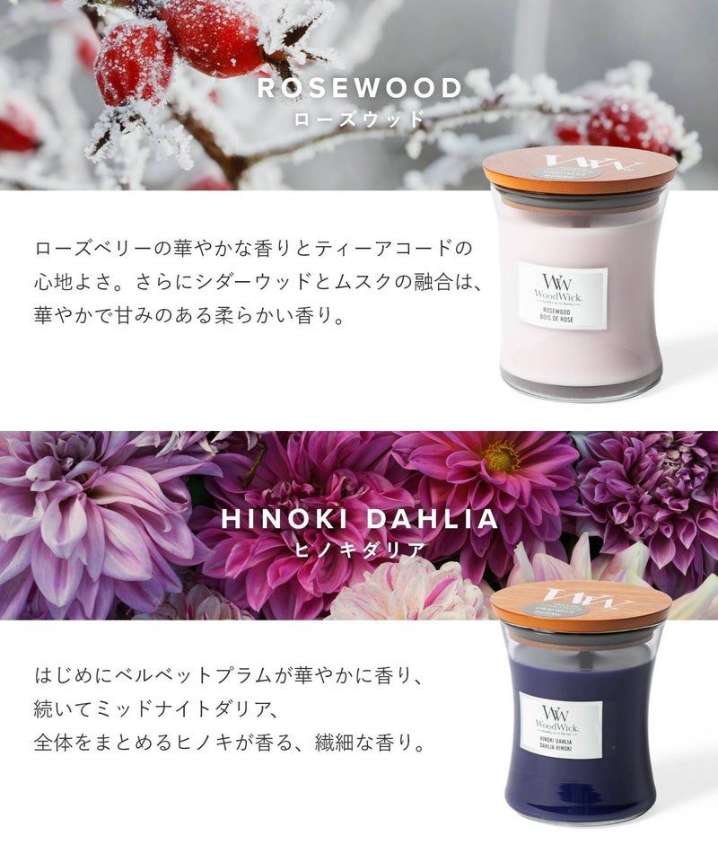 ブランド名は、キャンドルの特徴である「木(ウッド)でできた芯(ウィック)」が由来となっています。火を灯すと暖炉のようにパチパチと音がするキャンドルです。木製芯から聞こえてくる心地よい暖炉のような音と、高品質な香りが、癒しの空間を演出してくれます。自分用にはもちろん、ギフトにもオススメです。