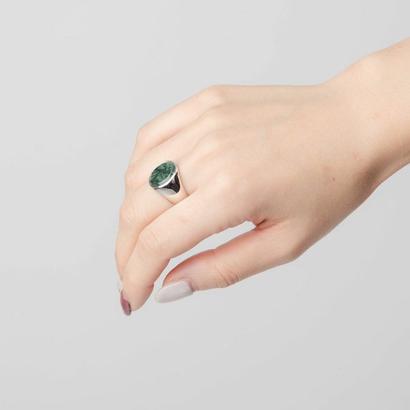 OVAL GREEN MARBLE STERLING SILVER リング