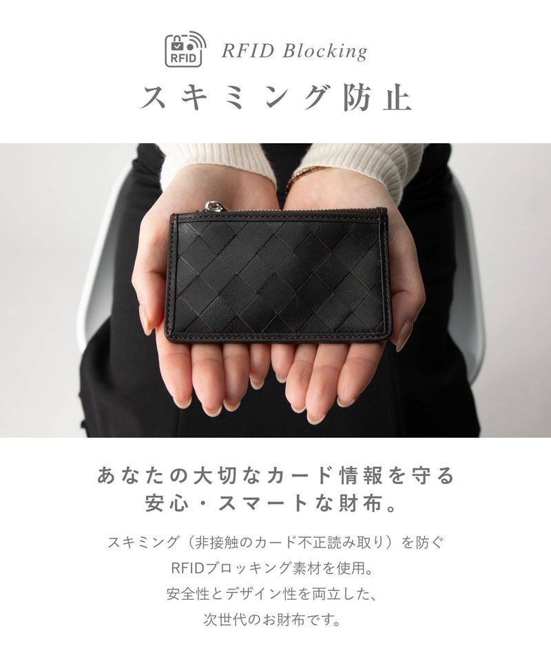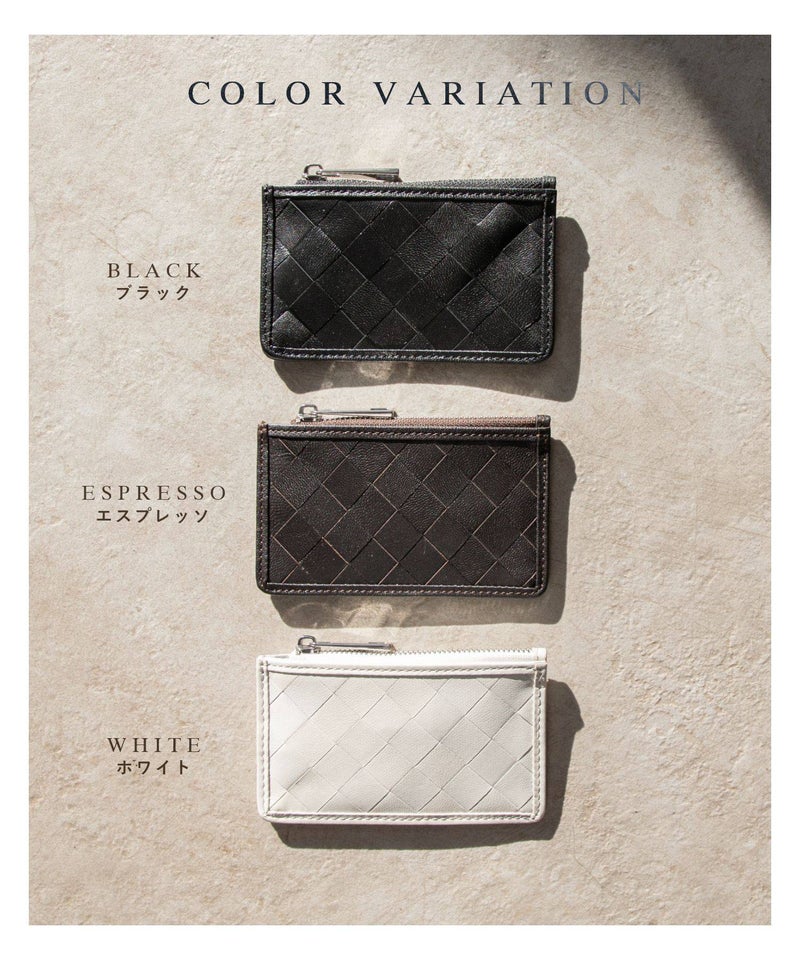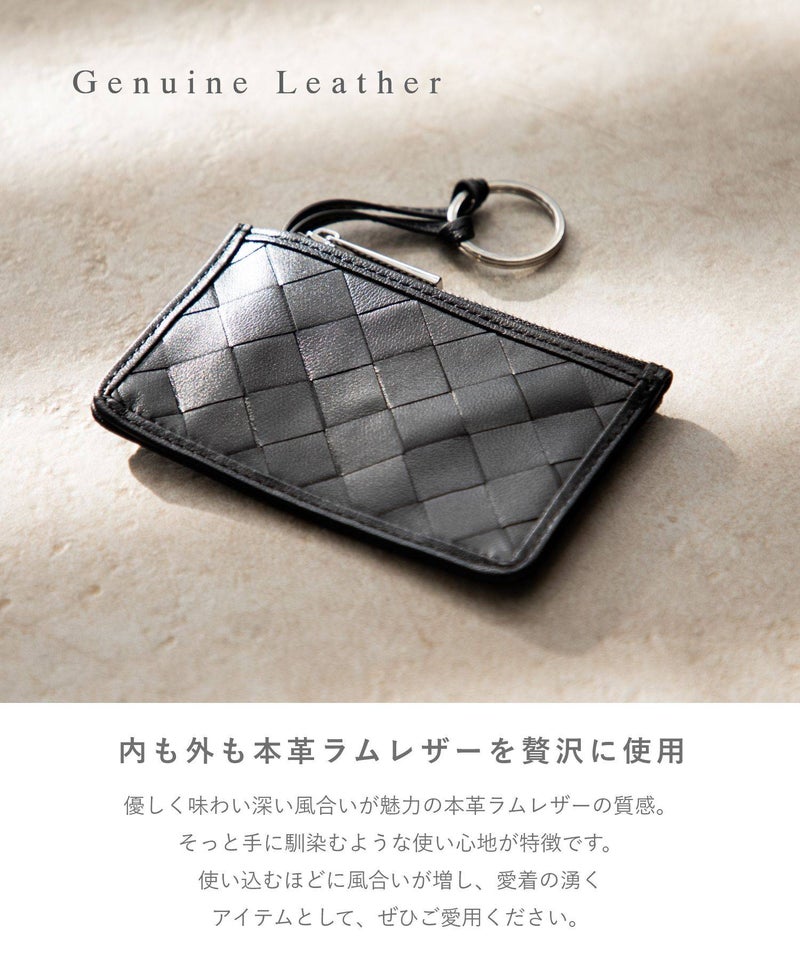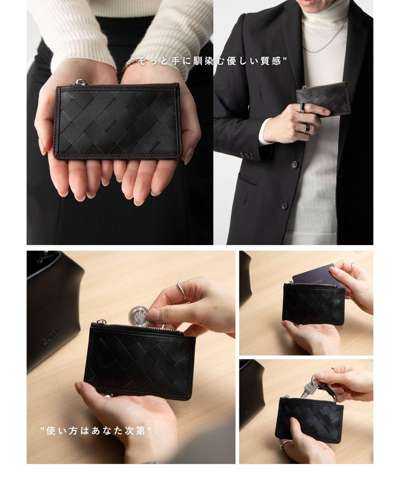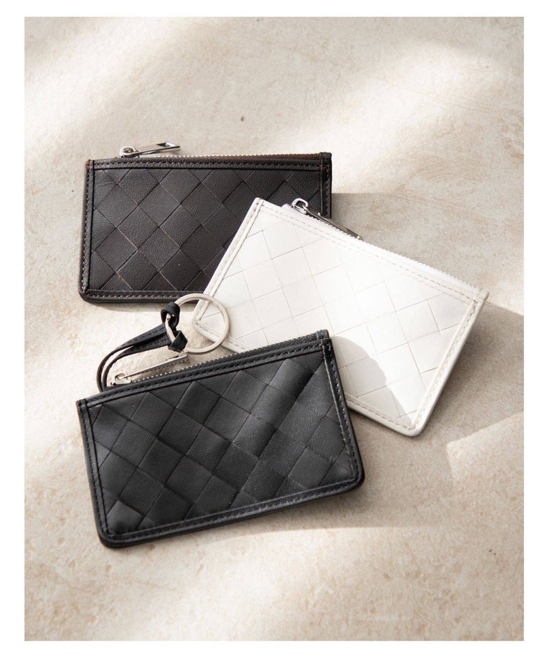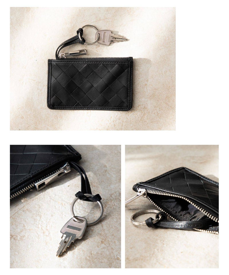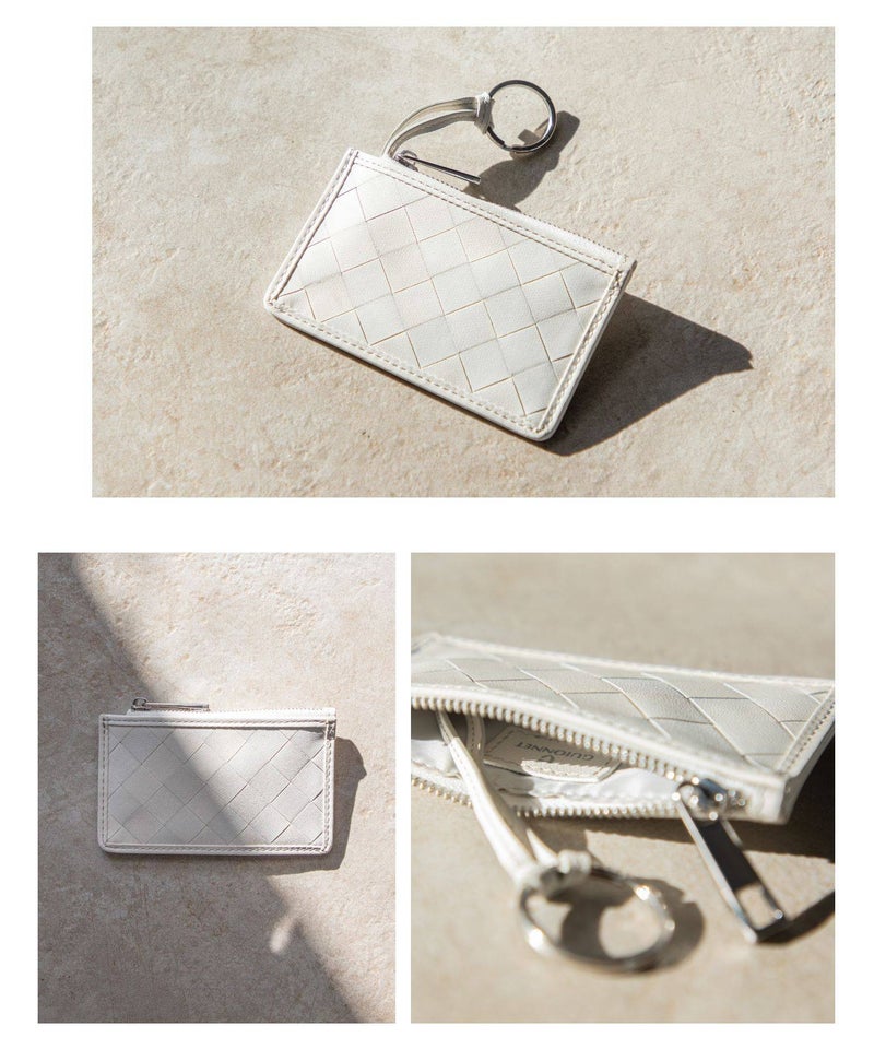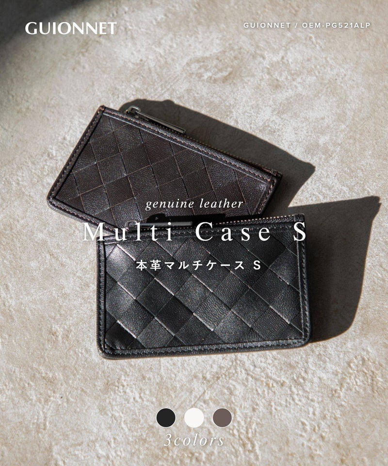 職工の手で編み込まれる美しい革の格子。GUIONNT(ギオネ)ではこれを「タイル」と名付けました。精緻でありながらどこか手作業の跡が残る規則的な構成は面に抑揚を持たせ、定番の革小物に新たな息吹を吹き込みます。手馴染のよいサイズ感のマルチケースです。